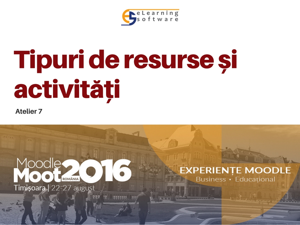 Resursele și activitățile reprezintă două categorii de obiecte Moodle extrem de importante. La fel de importantă este și diferențierea acestora. Resursele sunt acele obiecte dintr-un curs online prin care oferim informații cursanților. Activitățile sunt elementele pe care le includem într-un curs pentru a pune cursanții în situația de a folosi informațiile prezentate sub formă de resurse...