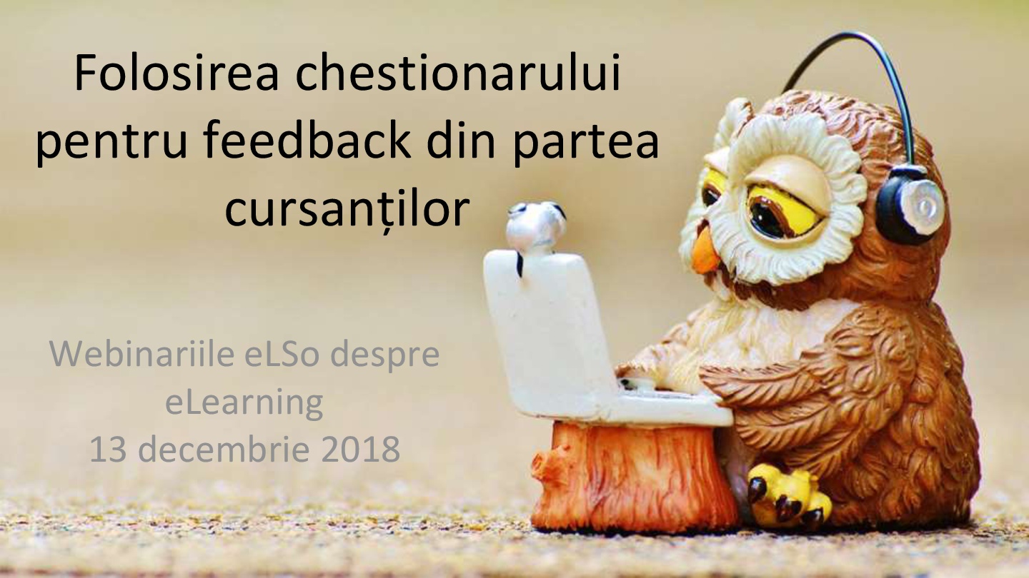 Feedback-ul din partea cursanților este un mijloc de a evalua calitatea și eficiența unui curs online. Este important să ne întrebăm dacă ne-am atins obiectivele pe care ni le-am propus la un curs și dacă am creat o experiență de învățare adecvată pentru cursanți. Chestionarul este un instrument Moodle care ne permite să obținem un feedback...