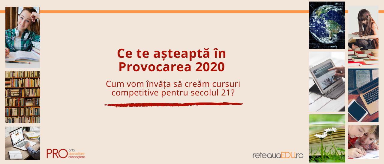 În curând (27 Februarie 2020) vom lansa programul „Provocarea 2020: Stăpânește tehnologia pentru a cuceri cursurile online”. De data aceasta te provocăm să înveți, alături de noi, să folosești diferite aplicații pentru a dezvolta materiale pentru cursurile online. Sunt multe lucruri pe care trebuie să le pregătești pentru un curs online de calitate. Într-un curs adaptat...